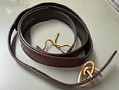 ●SG-5411 『シェルトン・ストラップ・バンジョー用リッチ・ウォルナット・カラー』(\12,000-)\13,200-税込 クリンチ・マウンテン・ボーイズのギタリストとしても知られジェームス・アラン・シェルトン(1960-2014)が25年以上前にデザイン、製造販売していたシェルトン・バンジョー・ストラップ。 馬の鞍の材料として最高級と云われるスカンジナビアンレザーを植物タンニンなめしで仕上げられた逸品。 肩に負担を与えず、体形に自然に馴染んで行きます。 伝統的なバスケットウェイブパターンの手彫り柄、J.D.クロウ、ロン・スチュアート、ピーター・ワーニック等、プロミュージシャンが使用。 |